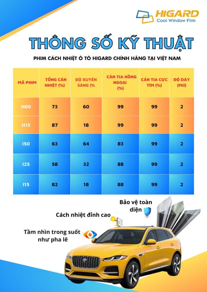 THÔNG SỐ KỸ THUẬT VÀ MÀU PHIM CÁCH NHIỆT XE Ô TÔ